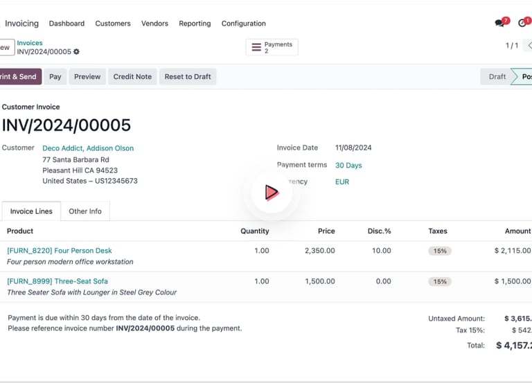 Automatización de la creación y gestión de facturas, así como conciliación bancaria.